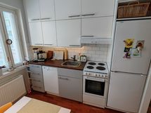 - Liesi: sähköliesi. Työtasot: laminaatti. Kylmäsäilytys: jääkaappi/pakastin. Varustus: liesituuletin, astianpesukone.