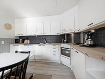 - Jääkaappi, pakastin, sähköliesi, uuni, astianpesukoneliitäntä, astianpesukone, kaapistot, liesituuletin ja koneellisen poiston säädin.