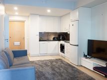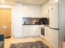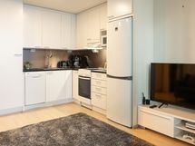 - Keittiön varusteet: Jääkaappipakastin, uuni, liesi, liesituuletin ja astianpesukone. Liesi: Keraaminen liesi.