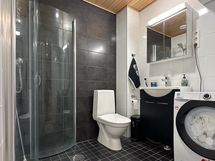 - Pesutilojen varusteet: WC-istuin, suihku, suihkuseinä, pesukoneliitäntä, lattialämmitys, peilikaappi, pesuallas, allaskaappi ja bidee-suihku.