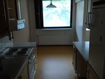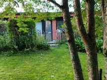 Rauhallisella alueella, palveluiden vieressä sijaitseva peruskuntoinen rivitalokaksio.