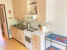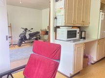 Asunto sopii hyvin myös liikuntarajoitteiselle. Huoneiden välillä ei ole kynnyksiä ja ulko-oven edessä on vain hyvin matala betonilaatta.