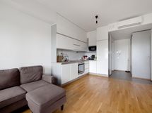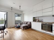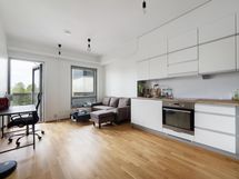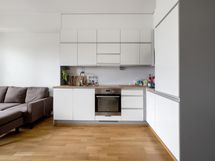 - Jääkaappi/pakastin, uuni, liesi, astianpesukone, liesikupu/-tuuletin, mikroaaltouuni, kaapistot. Kodinkoneet ovat integroitu.