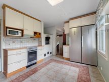 - Jääkaappi, pakastin, astianpesukone, erillisuuni- ja taso, liesituuletin, mikroaaltouuni, kaapistot, leivinuuni