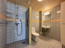 Pesutilojen varusteet: WC-istuin, suihku, peili, pesuallas ja pesukoneliitäntä. Erillisten WC:n lukumäärä: 2. Erillisen WC:n varusteet: WC-istuin, pesuallas ja peili. Erillisen WC:n kuvaus: kylpyhuonessa wc istuin ja erillinen vessa.