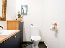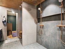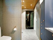 Kodinhoitohuone omalla sisäänkäynnillä tekee pyykkihuollosta helppoa ja toimii arjen tukikohtana.Tyylikäs kylpyhuone, erillinen WC ja laadukkaasti rakennettu sauna viimeistelevät viihtyvyyden.