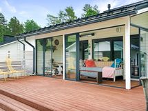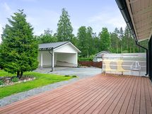 Ulkoalueet on suunniteltu käytännöllisiksi ja nautittaviksi:lasitettu ja katettu takaterassi sekä iso patio mahdollistavat oleskelun aikaisesta keväästä pitkälle syksyyn.Kahden auton katos ja tilava varasto takaavat arjen sujuvuuden – ja kaikki on jo valmiina.
