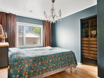 Päämakuuhuoneessa on oma walk-in-vaatehuone, joka tuo arkeen ripauksen luksusta. Eteinen on erillinen ja tilava, runsaalla säilytystilalla – täällä arki pysyy järjestyksessä.