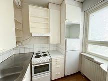 - Liesi: sähköliesi. Työtasot: laminaatti, metalli. Kylmäsäilytys: jenkkikaappi. Varustus: liesikupu.