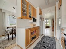 Sisätiloissa huomiota herättää erityisesti valoisa olohuone, joka yhdistyy ruokailutilaan muodostaen avaran ja monikäyttöisen kokonaisuuden. Keittiö on uusittu vuonna 2002 ja tarjoaa runsaasti säilytys- ja työtilaa. Kylpyhuone ja sauna ovat läpikäyneet perusteellisen remontin vuonna 2010, ja niissä on laadukkaat pintamateriaalit sekä lämmin, kutsuva tunnelma. Makuuhuoneet ovat tilavia ja rauhallisia, ja säilytystilaa löytyy kiinteiden kaapistojen muodossa.