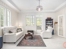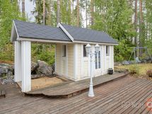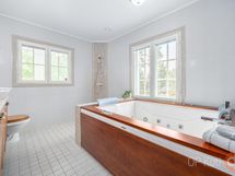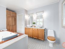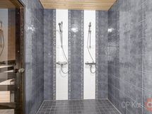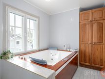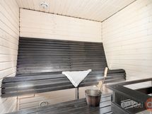 - Sauna muotolauteet, sähkökiuas, kylpyhuone, erillinen wc, suihkukaappi, poreallas iso, peilit, kaapit, pesukoneliitäntä, lattialämmitys, kiinteät valaisimet.