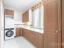 - Jääkaappi 2025, pakastekaappi 2025, keraaminen liesi, liesituuletin, astianpesukone, kiinteät valaisimet, pöytätasojen materiaali laminaatti. Tammikalusteet