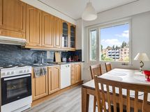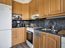 - Keittiön varusteet: Jääkaappipakastin, astianpesukone ja liesi. Liesi: Sähköhella. Keittiö siistikuntoinen ja kivasti laskutilaa, Remontoitu edellisten omistajien toimesta.