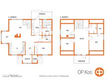 - Keittiö: Lattia laatta, seinät kaakeli ja maalattu. Olohuone: Lattia laatta, seinät tapetti. Makuuhuone 1: Alakerran makuuhuoneessa lattia laminaatti, seinät tapetti. Makuuhuone 2: Yläkerrassa lattia laminaatti, seinät tapetti. Makuuhuone 3: Yläkerrassa lattia laminaatti, seinät tapetti. Kodinhoitohuone: Lattia ja seinät laatta. Sauna: Lattia laatta ja seinät paneeli. Kylpyhuone: Lattia ja seinät laatta. Eteinen: Lattia laatta ja seinät maalattu. Wc: 2 kpl lattiat ja seinät yläkerrassa laatta ja alakerrassa tapetti. Makuuhuone 4: Yläkerrassa lattia laminaatti, seinät tapetti.