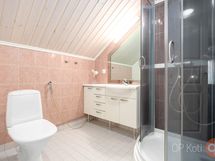 - Sauna, sähkökiuas, kylpyhuone, erillinen wc 2 kpl, suihku, suihkukaappi Yläkerran wc:ssä, peilit, allaskaappi, pesukoneliitäntä, lattialämmitys Alakerrassa ja yläkerran wc:ssä.