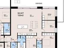 Liesi: erillisuuni, liesitaso. Työtasot: laminaatti. Kylmäsäilytys: jääkaappi/pakastin. Varustus: liesikupu, astianpesukone.