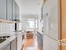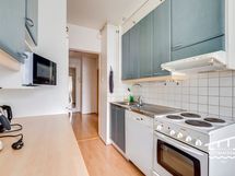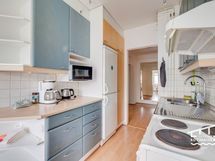 - Keittiön varusteet: Jääkaappipakastin, liesi, astianpesukone ja liesituuletin. Liesi: Valurautaliesi.