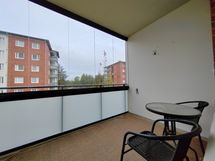 Olohuoneesta on käynti väljälle katetulle ja lasitetulle parvekkeelle, josta avautuvat näkymät eri suuntiin. Taloyhtiössä on kaapeli-tv, talohuolto, hissi, ovipuhelimet, yhteinen 50/10 M talolaajakaista kaapelilla. Taloyhtiö on kaukolämmössä, joten lämmitys kuuluu edulliseen vastikkeeseen.