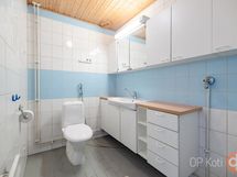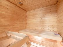 - Sauna, sähkökiuas, kylpyhuone, erillinen wc, suihku, peilikaappi, allaskaappi, pesukoneliitäntä, kiinteät valaisimet.