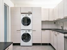 - Keittiön varusteet: Erillisuuni, liesituuletin, liesi, jääkaappi, mikroaaltouuni, astianpesukone, erillinen pakastin ja liesituuletin / hormi, kiinteät valaisimet. Liesi: Induktioliesi ja integroitu, erillisuuni.