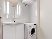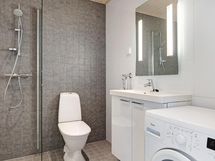 - Kylpyhuone, suihku, peilit, pesukoneliitäntä, lattialämmitys, kylpyhuonekaapisto, kiinteät valaisimet, pyykinpesukone