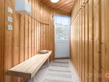 Puu. puurunkoinen, tiiliverhoiltu ja hirsipaneloitu