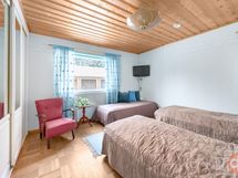 Keittiö: muovimatto / maali. Makuuhuone 1: parketti / tapetti. Makuuhuone 2: parketti / tapetti. Makuuhuone 3: parketti / tapetti. Kodinhoitohuone: laatta / maali. Sauna: laatta / paneeli. Kylpyhuone: laatta / laatta. Eteinen: laatta / maali. Wc: laatta / laatta. sali: parketti / hirsipaneeli. makuuhuone 4: parketti / tapetti. ruokailuhuone: parketti / puolipaneeli + tapetti.