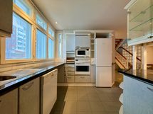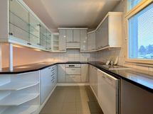 - Keittiön varusteet: Jääkaappipakastin, erillisuuni, astianpesukone ja liesituuletin. Liesi: Keraaminen liesi. Työtason materiaali: Laminaatti.