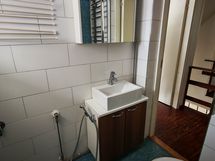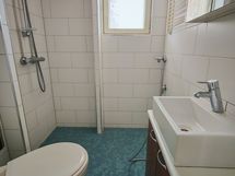 - Pesukonevalmius, Suihku, Peilikaappi, Allaskaappi, Laattalattia, Rättipatteri, Laattaseinä, Avattava ikkuna, Lattialämmitys