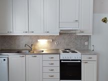 - Keittiön varusteet: Jääkaappipakastin, astianpesukone, liesi (2023 turva) ja liesituuletin. Keittiön yhteydessä "ruokakomero".