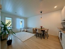 Joensuun Karhunmäen kaupunginosaan vuonna 2023 valmistuneen rivitaloyhtiön siistikuntoinen saunallinen kaksio. Huoneiston lattiat vinyyliä ja seinäpinnat maalattu. Keittiö yhtenäistä tilaa olohuoneen kanssa ja olohuoneesta käynti takaterassille ja takapihalle. Kylpyhuone kaakeloitu ja saunan ja kylpyhuoneen välinen seinä lasia.