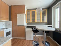 - Keittiön varusteet: Jääkaappi, liesi ja astianpesukone. Liesi: Sähköhella. Keittiön kaapit uusittu 2000 luvun alussa, samoin kodinkoneet, Jääkaappi pakastelokerolla v 2020.