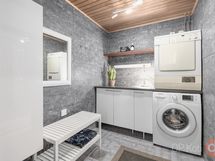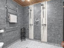- Sauna, sähkökiuas Ainavalmis- kiuas, kylpyhuone, erillinen wc, suihku 2 suihkua, peilit kylpyhuoneessa, peilikaappi erillinen wc ( kaapit+peili), kaapit khh, allaskaappi erillinen wc, pesukoneliitäntä, lattialämmitys kph, khh, erillinen wc, sauna, kiinteät valaisimet upotetut valot erillinen wc ja kph. saunassa valokuituvalaistus . kph on rättipatteri, pyyhetankoja,