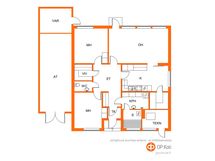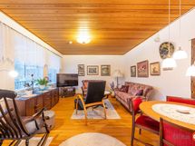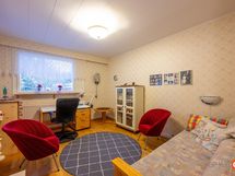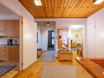 Kaksi makuuhuonetta, tilava olohuone, keittiö, wc, kylpyhuone ja sauna. Säilytystilaa löytyy vaatehuoneesta ja kaapistoista. Olohuoneesta on käynti katetulle takaterassille.