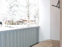 Kuvaus: Huoneistossa tilava vaatehuone, taloyhtiössä häkkivarasto.