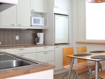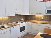 Keittiö uusittu koneineen v. 2013. Varusteena jääkaappi, pakastekaappi, astianpesukone, sähköliesi, liesituuletin. Lattiat laminaattia, seinät maalattu.