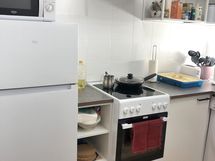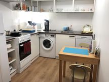 - V. 2022 remontoitu keittiö, jossa uusitut kaapistot ja koneet. Varusteena jenkkikaappi, keraaminen liesi, astiapesukone, liesituuletin (aktiivihiili). Keittiöön asennettu myös pyykinpesukone. Lattia laminaattia, seinät maalattu.