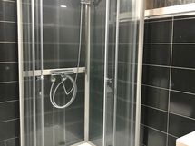 suihku, kylpyhuonekaapistoa, wc-toiminnot. Lämminvesivaraaja sähköllä, uusittu v.2021. Erillisen WC:n kuvaus: WC-toiminnot kylpyhuoneen yhteydessä.