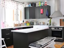 - Keittiö uusittu v. 2019. Varusteena uudet kaapistot, liesi, erillisuuni, liesituuletin, leivinuuni. Lattia parkettia, seinät maalattu.