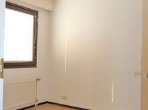 Maalatut seinäpinnat, muovimattolattia.