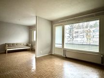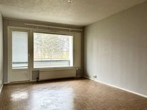 - Olohuone, yksi mh, ja parveke vesitornin puistoalueeseen päin, keittiö ja toinen mh Urheilukentälle päin.