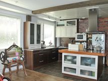 - Avoin keittiö olohuoneen yhteydessä Seinäpinnat osin maalattu, osin tapetoitu, osin tiiliseinää, lattia laatoitettu. Varustus; jääkaappi (2022), keraaminen liesi, liesituuletin, astianpesukone (2022).