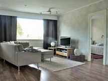 - keittiön ikkunat Urheilutielle, mh:t ja olohuone puistoon ja urheilukentälle päin.