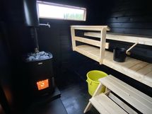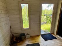 3) uusi saunarakennus vuodelta 2022, jossa erillinen pukuhuone, jossa myös riittävästi tilaa nukkua