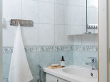 - Pesutilojen kuvaus: Saunatilat uusittu 2014. Varustus: pesukoneliitäntä, lattialämmitys, suihku, peilikaappi, kiinteät valaisimet, kylpyhuonekaapisto. Varustus: lattialämmitys, bidee-suihku.
