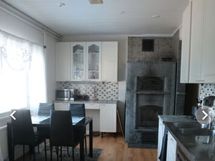 - Tilaa isolle ruokapöydälle, Paljon kaappitilaa, Paljon työskentelytilaa, Suuri tiskipöytä, Puutasot, Astianpesukone, Pesukoneliitos, Induktioliesi, Liesikupu, Liesituuletin, Jääkaappi, Pakastin