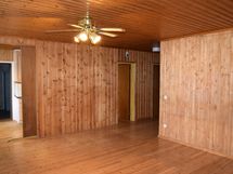 Keittiö: lautalattia, seinät paneloitu tai laatoitettu. Olohuone: lautalattia, seinät paneloitu. Makuuhuone 1: lautalattia, seinät paneloitu. Makuuhuone 2: lautalattia, seinät sisustuslevyä. Makuuhuone 3: lautalattia, seinät sisustuslevyä. Sauna: maalattu betonilattia, seinät paneloitu/laatoitettu. Kylpyhuone: lattia ja seinät laatoitettu. Eteinen: lautalattia, seinät paneloitu. Wc: lattia laatoitettu, seinät maalattu.