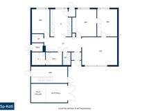 - Pinta-alan peruste: Ei tarkistusmitattu. Pinta-alat saattavat tämän ikäisissä kohteissa (rekisteröity ennen 01.01.1992) poiketa olennaisestikin asuinrakennusten nykyisten mittaustapojen ja standardien (SFS 5139) mukaan laskettavasta asuintilojen pinta-alasta. Pinta-ala voi siis olla edellä mainittua pienempi tai suurempi. Pinta-alat rakennuslupapiirustusten mukaan: Huoneistola 118 m2, autotalli 19 m2, varasto 17 m2, kattilahuone 2,5 m2. Nämä ylittävät ilmoitetun kerrosalan, joka on 135 m2. Pinta-aloja ei ole tarkastusmitattu.