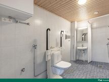 - Kylpyhuone, suihku, peilikaappi, wc-istuin tuilla, pesukoneliitäntä, lattialämmitys, kiinteät valaisimet, kylpyhuonekaapisto, sähkösauna. Erillinen wc: wc-istuin, peilikaappi, lavuaari, kaapisto, lääkekaappi.