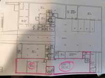 Pohjapiirrokset varastoista kuvissa. Tilat korostettuna pinkillä värillä.